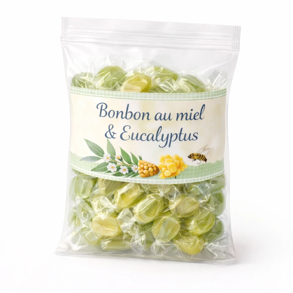 Bonbons au miel et eucalyptus, frais et apaisants.
