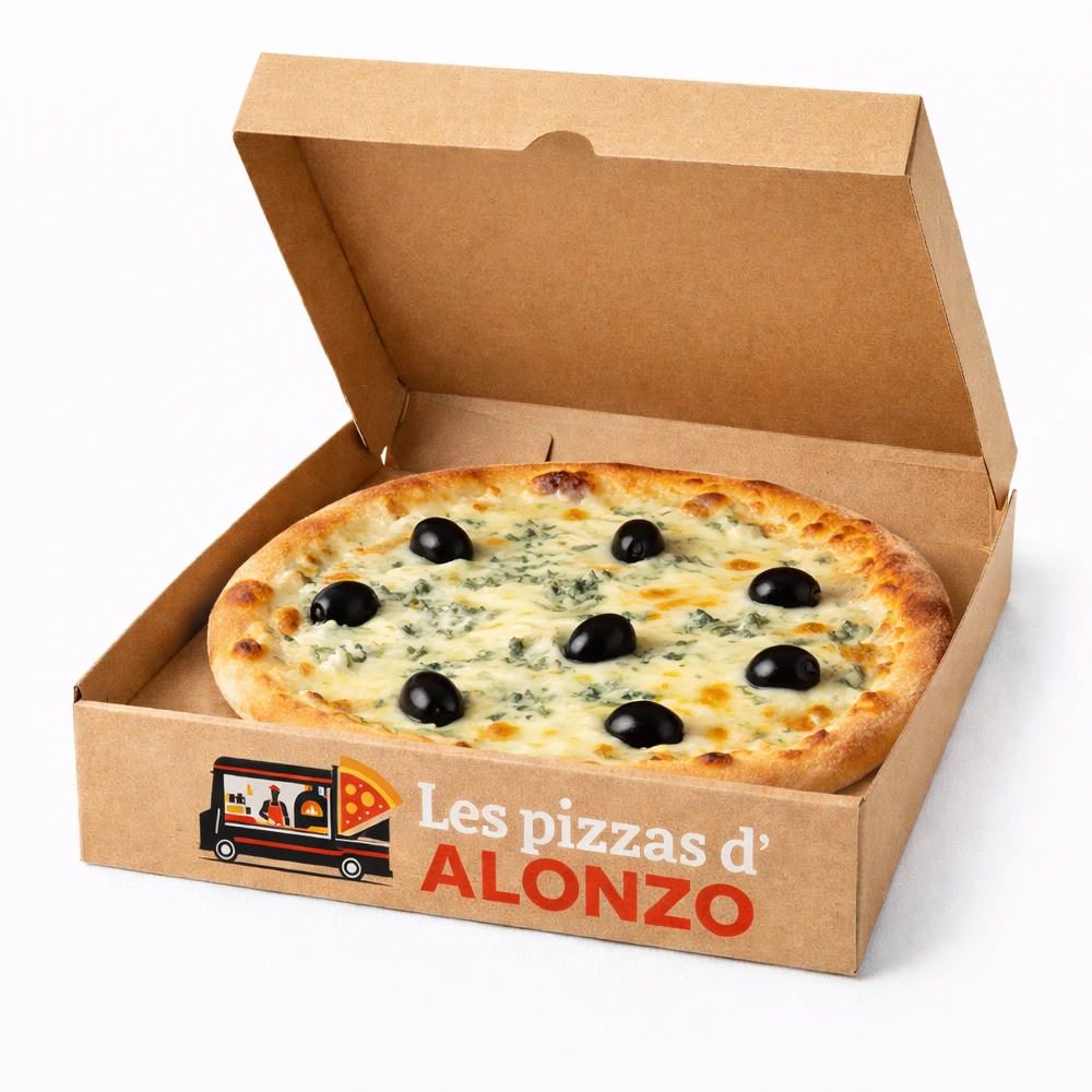 Base tomate, mozzarella fondante, emmental et fromage bleu.